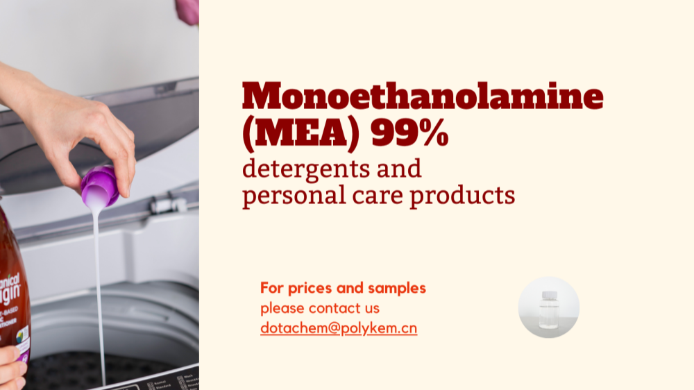 SaNakakaapekto, Ang mataas na kalidad na monoethanolamine 99% na inaalok namin ay nakakatugon sa mahigpit na mga kinakailangan ng mga industriya ng naglilinis at personal na pangangalaga. Para sa karagdagang impormasyon tungkol sa aming mga produkto ng MEA at ang kanilang mga pagtutukoy, mangyaring mag -clickditoUpang bisitahin ang pahina ng produkto. Kung mayroon kang anumang mga katanungan, kailangan ng mga sample o nais na talakayin ang iyong mga tukoy na kinakailangan, mangyaring makipag -ugnay sa amin sa dotachem@polykem.cn. Ang aming dalubhasang koponan ay laging handa na tulungan ka at magbigay ng pinakamahusay na mga solusyon para sa iyong mga pangangailangan sa negosyo.